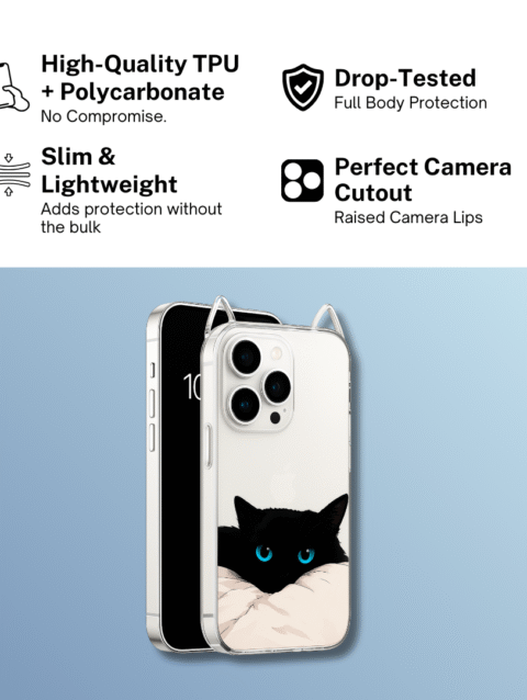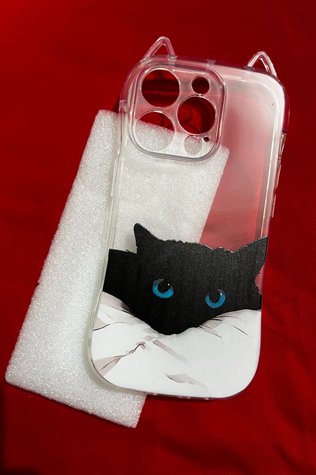 Black Cat Transparent Case with Cat Ears for a Playful Touch