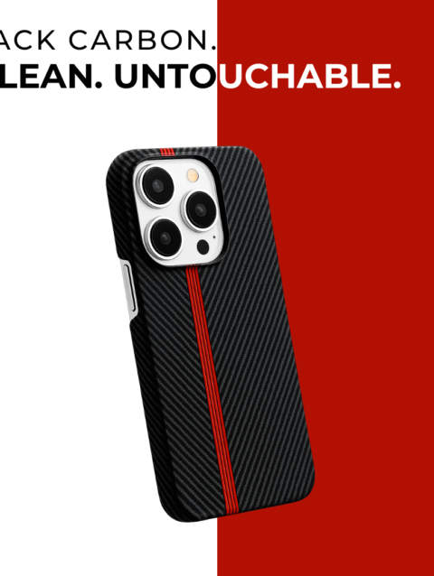 Luxury Black Carbon-Fiber Texture, Dual-Stripe Slim Case