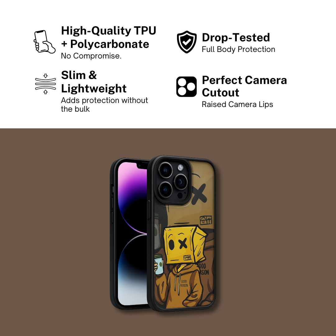 Add some personality to your iPhone with this cartoon-inspired case! Featuring a fun box-headed character, this design is more than just an accessory—it’s a statement. If you’re someone who likes to show off a unique style, this case is the perfect way to bring a touch of fun to your phone.