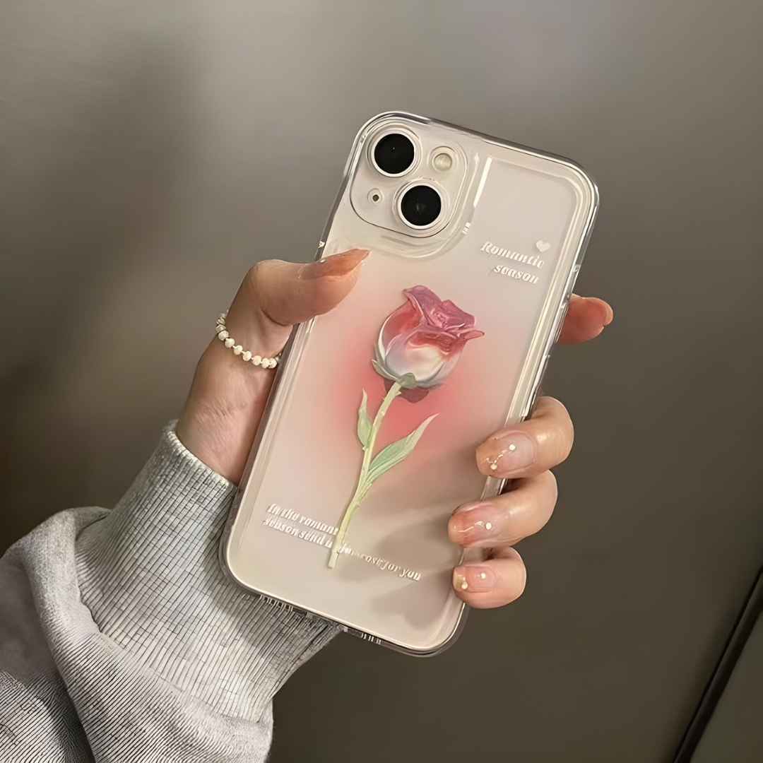The clear structured body keeps the overall look light and polished, while the raised camera surround and smooth edges give it a more finished feel in hand. It has the charm of a romantic floral design, but the shape and detailing keep it refined rather than overly decorative. Easy to style, easy to carry, and made to add a softer statement to your everyday phone.
