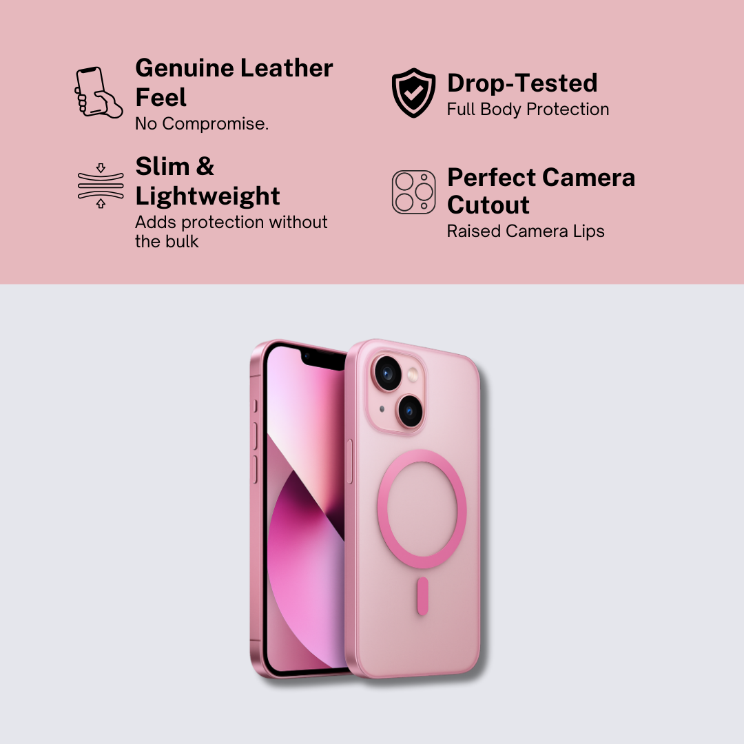 Add a pop of color and protection with this iPhone 14 pro transparent MagSafe case. Featuring a unique semi-transparent finish and a pink MagSafe ring, this case combines the best of aesthetics and functionality. The slim, lightweight design protects your phone without adding unnecessary bulk.