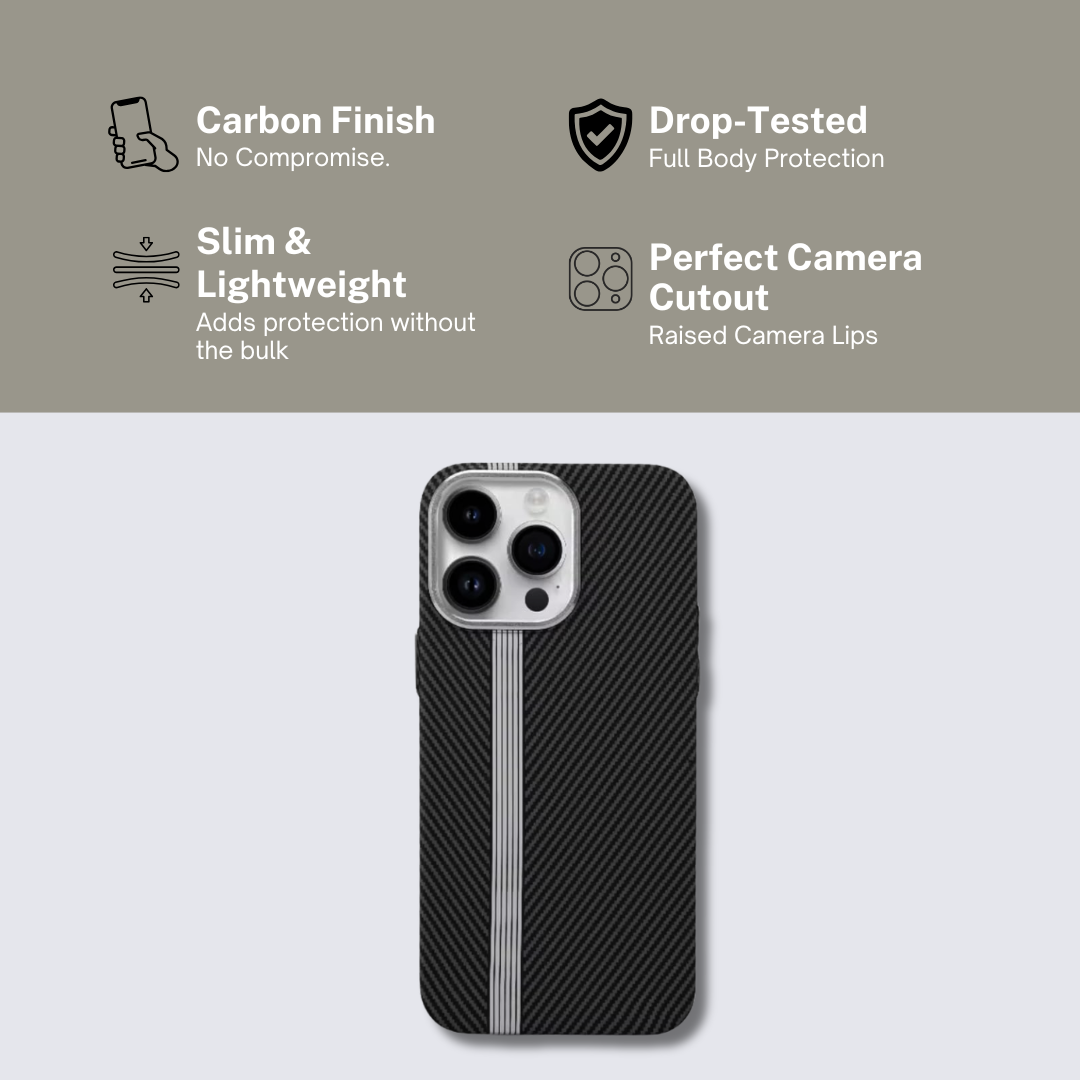 Signature Limited Edition Carbon Fiber Finish iPhone Case (Midnight Black) brings together premium style and everyday practicality. With its refined carbon fiber texture and slim profile, this case adds a modern, elevated look to your iPhone without adding extra bulk. Built for daily use, it helps protect against scratches, light impact, and regular wear while keeping a comfortable grip and precise fit.