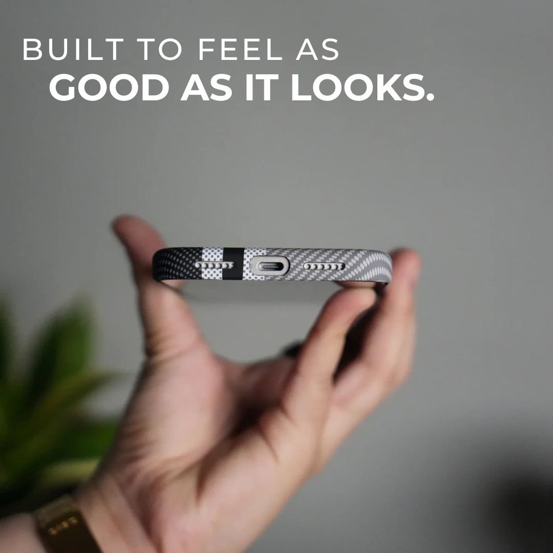 The Signature Limited Edition Carbon Fiber Finish iPhone Case (Titanium Grey) is made for a clean premium look without feeling bulky. It has a sleek carbon fiber finish that gives your phone a sharp, modern style, while the slim fit keeps it comfortable to hold and easy to carry every day.