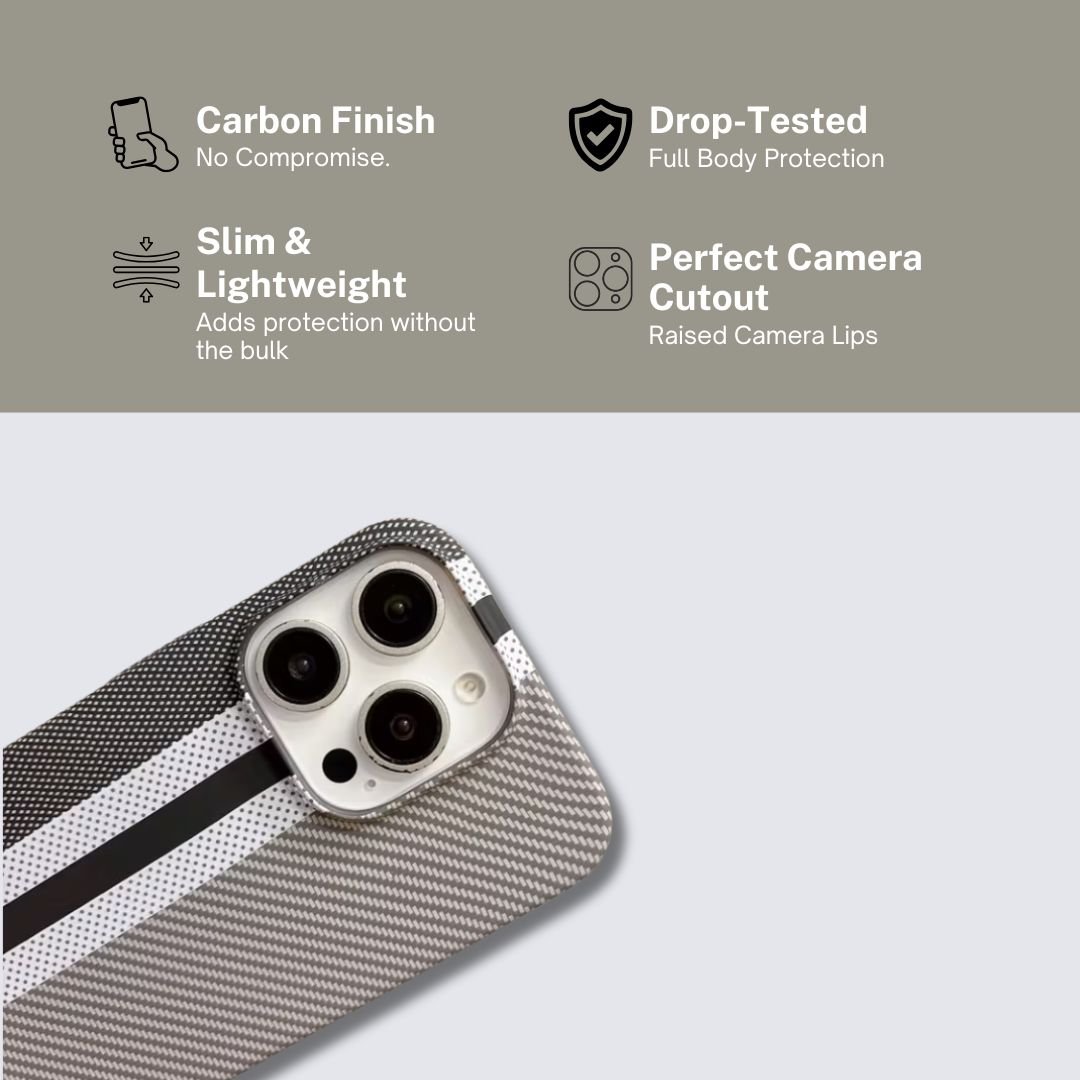 Signature Limited Edition Carbon Fiber Finish iPhone Case (Titanium Grey) brings together premium style and everyday practicality. With its refined carbon fiber texture and slim profile, this case adds a modern, elevated look to your iPhone without adding extra bulk. Built for daily use, it helps protect against scratches, light impact, and regular wear while keeping a comfortable grip and precise fit.