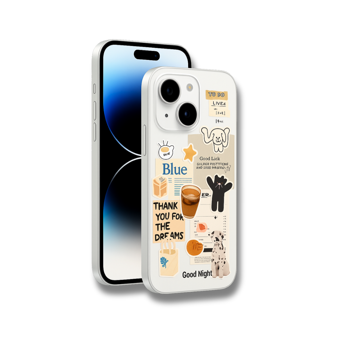 Bring creativity and personality to your phone with this iPhone 15 aesthetic case. Designed for those who love style as much as protection, this case features a clear body decorated with unique sticker-inspired artwork that gives your device a fun and trendy look.